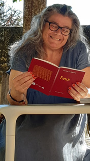 Lecture de FEUX, de Perrine Le Querrec, sous le tilleul, à la BiG, Gourdon, 2020
