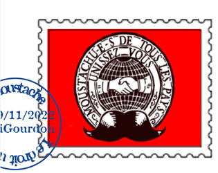 Création d'un timbre original « Moustachu-e-s de tous les pays Unissez-vous ! » pour la sortie du livre de Mathieu Colloghan « Le droit universel à la moustache – L'exemplaire lutte des ouvriers limonadiers restaurateurs pour le droit au port de la moustache (et autres droits sociaux) » que nous avons publié en décembre 2022 et qui reste notre livre de référence (ré-édition courant 2025)