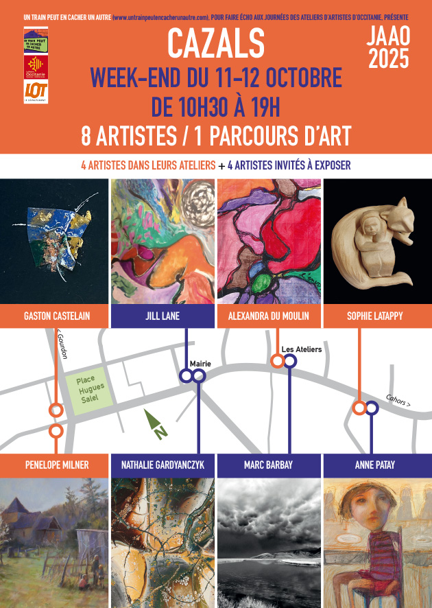 ![]() ![]() En avant première 2026 ![]() Voir aussi sur cet évènement : cnap.fr/lanniversaire-de-lart avecvous.rts.ch/evenements/emissions/anniversaire-de-l-art ![]() "Nawak" - ce titre que nous avons retenu - est à rapprocher de la définition du comportement basique du Nawakien. L'expression "faire Nawak" peut vouloir dire à peu près n'importe quoi, et parfois le reste. Juste pour terminer cette année 2025 sur une note souriante, et remercier les artistes adhérents du Train qui participent à animer notre communauté. ![]() ![]() JAAO 2025, c'est déjà fini. Cliquez ici pour accéder à quelques images. ![]() Journées des Ateliers d'Artistes d'Occitanie (JAAO) A l'initiative de la région Cette année ce sera les SAMEDI 11 et DIMANCHE 12 OCTOBRE 2025 Notons cela dans nos calepins. Les artistes qui souhaitent servir d'étape au parcours qu'organise l'association à Cazals doivent vite se faire connaitre. Ils peuvent aussi s'inscrire sur ce site : Cliquez sur l'image ![]() Les JAAO sont à ne pas confondre avec ![]() Sur l'initiative de la Maison des Artistes Les 13 et 14 septembre 2025. (ndlr) On y était ![]() ASSEZ ! L'expo reste visible (sous conditions) jusqu'au 28 septembre 2025 CLIC vers la brochure de présentation des artistes et de leurs oeuvres ![]() Pour tout autre renseignement cliquez sur l'affiche ![]() Avant de venir, n'oubliez pas de vous renseigner auprès de notre hôte : ![]() www.scenette.fr 06 62 78 25 33 CLIC vers la captation du groupe CHANT LIBRE interprétant la chanson de NOUGARO/VANDER sur les planches de La Scénette (by Pascale Kutner, 05/08/25)