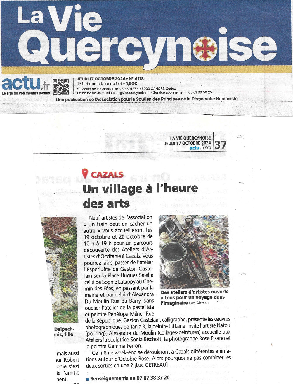 -o-O-o- Dès le 12/10 La Vie Quercynoise nous aide à dynamiser Cazals avant les Journées des Ateliers d'Artistes d'Occitanie .