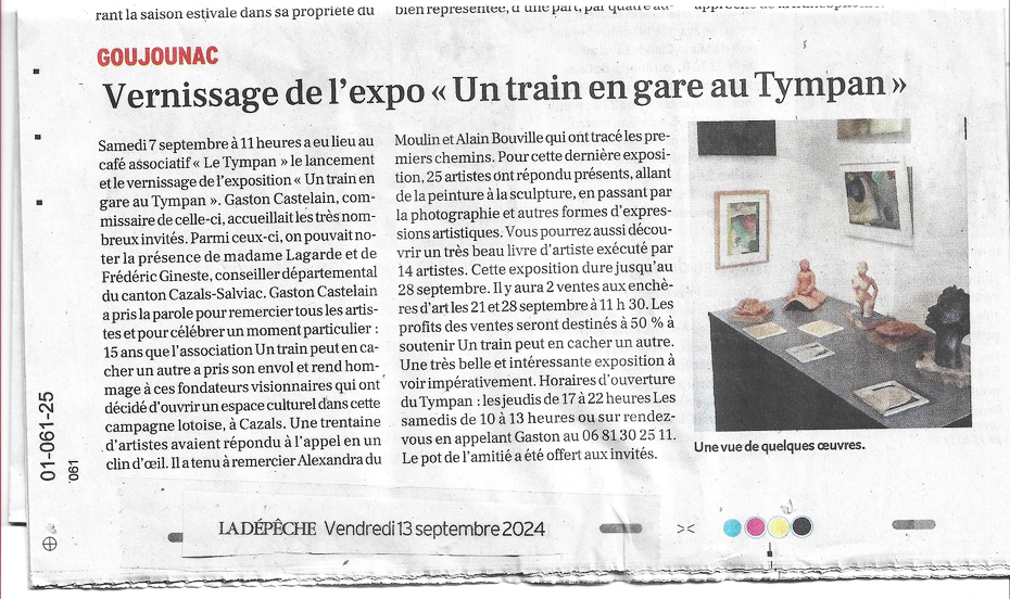 -o-O-o- A la veille de l'ouverture de l'expo "Un train en gare du Tympan" on pouvait lire cet article de La Dépêche :