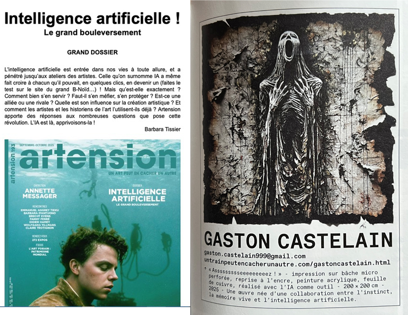 Quelle nouvelle formidable : Gaston Castelain est sur Artension ! (N° 193 de sept/oct 2025) Vous avez pu découvrir cette création (petite partie de son travail ) au cours de la saison à La scénette à l'Abbaye Nouvelle 46, présent dans l'expo de Juin à Sept, sur le thème "ASSEZ!".