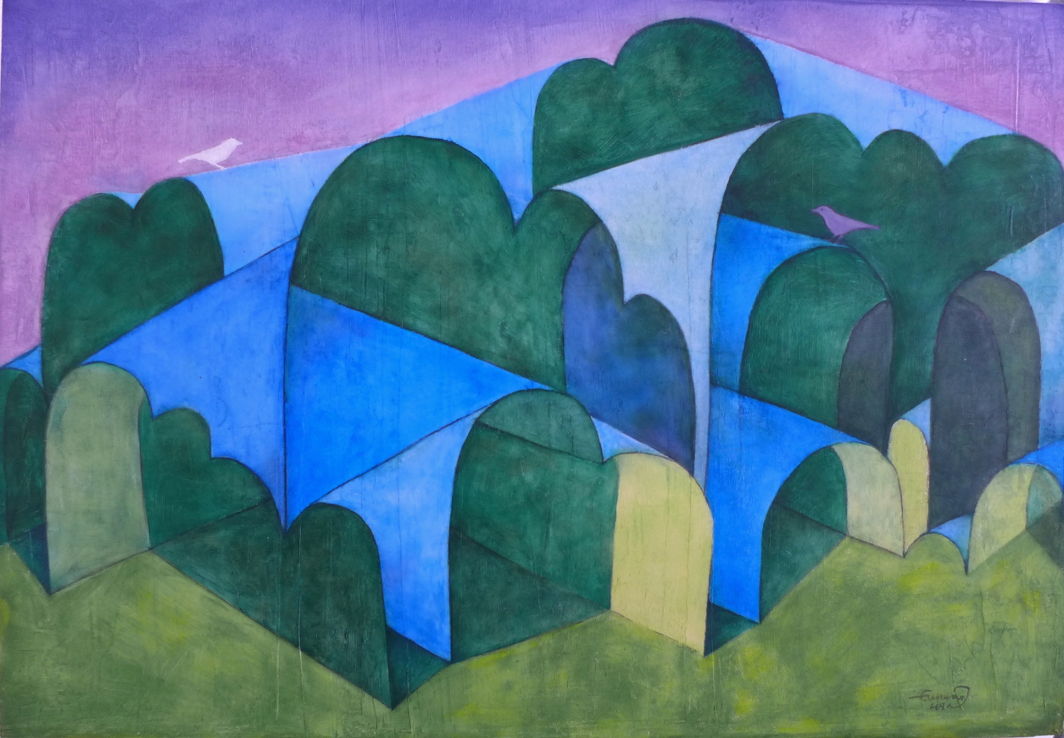 En 2014, elle nous écrivait : "C'est dans la marche, la randonnée le long des sentiers, que j'ai pu trouver une forme d'expérience spirituelle d'où proviennent un certain nombre de sujets figuratifs représentés dans ma peinture. Ainsi, l'acte de marcher nous offrirait-il le temps de méditer et de nous aider à retrouver ce que nous avons oublié. Pour partie, mes travaux sont la mémoire de ces errances."
