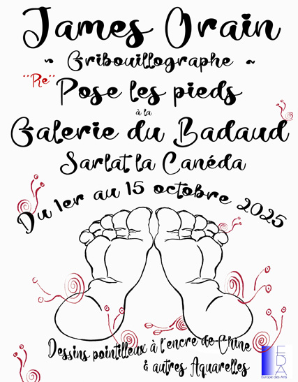 Je retourne pour 15 jours à la Galerie du Badaud, 2 rue Magnanat (24200 Sarlat la Canéda), du 1er au 15 octobre 2025. Horaires d'ouverture, de 10h00 à 19h00 tous les jours. Ci-après mon affichette avec petit laïus.