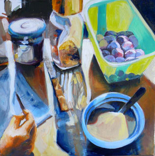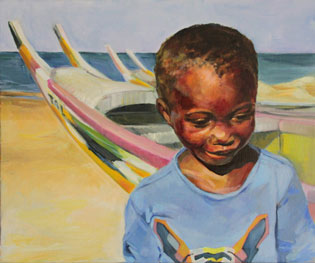 Sa peinture est un arrêt sur image, s'approprie un temps, une émotion artistiques et nous les fait partager. Son regard privilégie le relationnel des individus avec leur environnement, c'est par une palette colorée, qu'elle plante le décor.