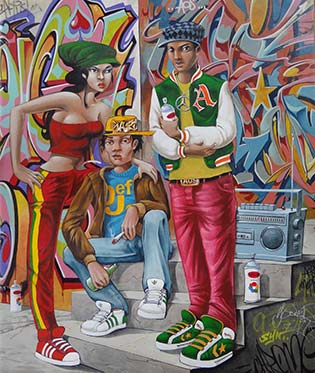 Valery commence à peindre de façon autodidacte une série de portraits sur les « piliers de comptoirs », « portraits de familles ». Ces personnages à l’esthétisme lisses et colorés révèlent leurs caractères psychologiques. Empreints de l’univers esthétique des années 70, 80 et 90; ces stéréotypes nous renvoient à notre imaginaire collectif. Ils utilisent différentes techniques et supports de peintures, notamment l'utilisation de tissus imprimés.