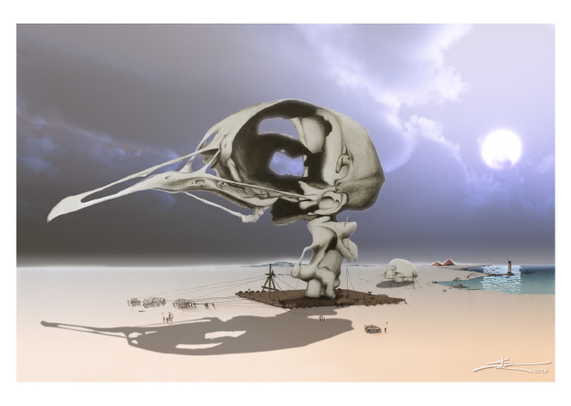 En ajoutant l’emploi du numérique à ma palette d’outils et de techniques traditionnelles (huile, gouache, mine de plomb...), pour m’exprimer je me situe, me semble-t-il, de plein-pied dans mon époque...